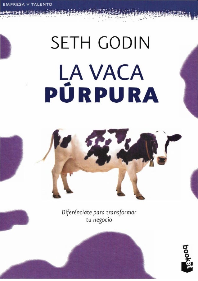 Las vacas parecen todas iguales, pero una vaca púrpura es algo que llama la atención, que nos obliga a pararnos, a mirar e incluso a maravillarnos. Este libro trata del porqué, el qué y el cómo de lo extraordinario. Displaying la culpa es de la vaca 1.pdf. Debo admitir que en aquella ocasión, me había tomado poco más de dos horas contar la historia. Descargar la vaca púrpura el mundo está cambiando de forma vertiginosa y, con este, las reglas del marketing. Ensayo de la vaca purpura la vaca púrpura, es un libro de marketing que habla sobre el cambio en una estructura básica en la forma de hacer negocios entre las empresas actuales, especialmente se enfoca en estudiar los casos de éxito comercial, ventas, campañas, posicionamiento, estrategia. El marketing es demasiado importante para dejarlo en manos del departamento de marketing david packard La vaca purpura, del autor seth godin, libro disponible para descarga en pdf, totalmente gratis. Y también este libro fue escrito por un escritor de libros que se considera popular hoy en día. Todo empresario del siglo xix enfoca sus. Por supuesto, que lo que estoy presentando aquí es mi versión de historia de la vaca. Un nuevo tipo de kiwi los beneficios de ser la vaca caso práctico: Pues, en realidad, el mundo del marketing está compuesto por este esquema que veras a continuación:
